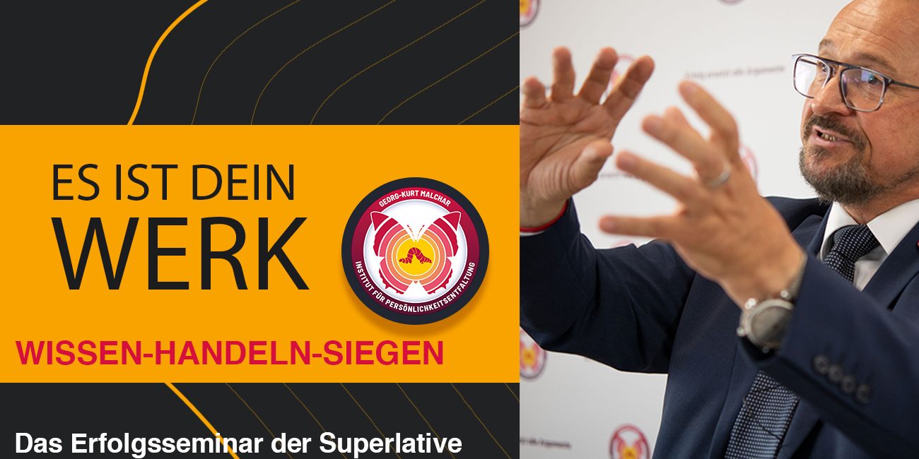 In unserem 4-tägigen Hauptseminar WISSEN-HANDELN-SIEGEN sprechen wir über die wesentlichen Kernbausteine einer ganzheitlich glücklichen und erfolgreichen Persönlichkeitsstruktur.